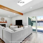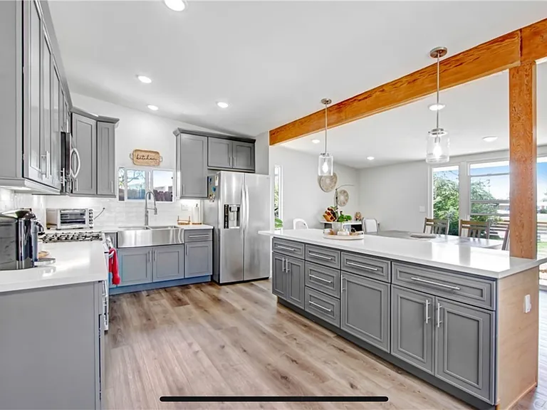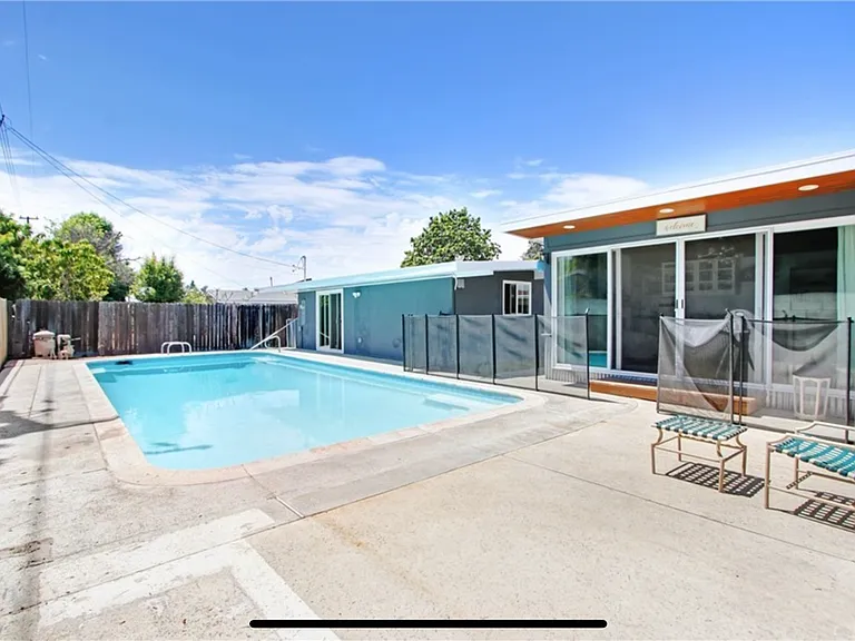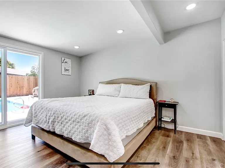 9852 Dewey Drive presents a beautifully remodeled single-story residence in the heart of Garden Grove, blending modern upgrades with classic California living. Originally built in 1955, this 4-bedroom, 2-bathroom home offers approximately 1,400 square feet of refreshed interior space on a generous 7,200 square foot lot. The open and inviting layout features luxury vinyl plank flooring, recessed lighting, and a remodeled kitchen complete with updated cabinetry and granite or quartz countertops. A standout feature of the property is the expansive backyard retreat, highlighted by a re-plastered in-ground pool and a stylish pool house with tongue-and-groove wood ceilings and an electric fireplace—ideal for entertaining or relaxing year-round. With a two-car attached garage, ample driveway parking, and close proximity to major Orange County attractions, dining, and freeway access, this home offers comfort, convenience, and exceptional outdoor living.